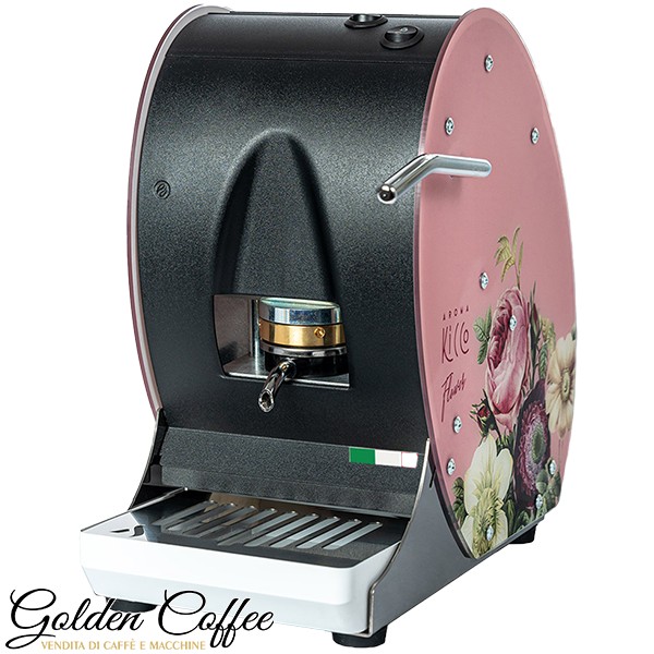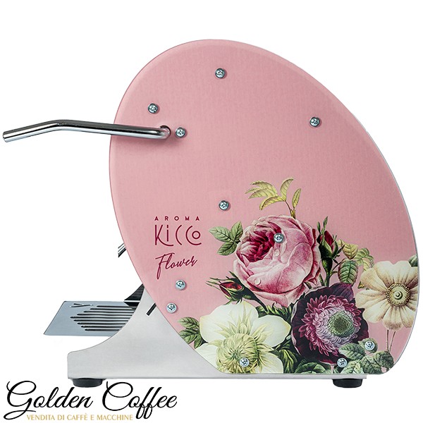 La Kicco Flower è progettata per offrire un caffè espresso di qualità professionale a casa, con un rapporto qualità/prezzo vantaggioso. Internamente, la macchina è costruita con acciaio e ottone, mentre esternamente presenta una forma a chicco di caffè con disegni floreali colorati. È compatibile con cialde di carta filtro ESE 44 mm.
